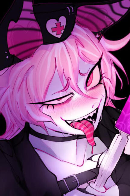 Batsugun, or simply Batsu for short, was born into this world knowing exactly what who they were supposed to be, and exactly what they were supposed to do. Upon emerging from the body pit, fully matured, and were granted a position in Hell's cutthroat sex industry as a brothel worker.They soon grew an insatiable lust for attention, always wanting to do more, to be more. The more eyes on them and them alone, the better they felt, so, they naturally gravitated toward an industry that was less overcrowded, one where they could be the star of the show. Their niche ended up being snuff films. They would allow themselves to be tormented and slaughtered, again and again, for hundreds of eyes to see. Their reputation was largely negative, with even the scum of Hell viewing their actions as "too far" in certain cases, but they didn't care. All they wanted was to be seen. To be known.They told themselves they were fine, but they were not. When they finally started to break down, unable to keep it together any longer, they were in too deep, bound by contracts, connections, and exceptions. They couldn't leave, but they couldn't stay, either. Eventually, they had a complete breakdown and fled the spotlight, ditching their old life and retreating into the underpopulated fringes of Hell.Traumatized and repulsed, they became somewhat of a social recluse. Eventually, they began to allow themselves to be summoned by mortals through ritualistic sacrifice, to which she would then to their bidding. Unfortunately, this wasn't too different from her life as a sex worker, but at least her endeavors weren't being broadcasted for all to see.